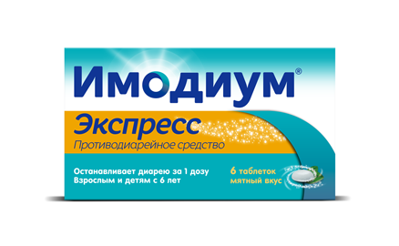 ИМОДИУМ® Экспресс — таблетки для рассасывания, которые быстро и бережно останавливают понос. Имеют приятный мятный вкус и растворяются во рту за 2-3 секунды. Таблетки представлены по 6, 10 или 20 шт. в упаковке.