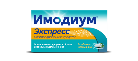 ИМОДИУМ® Экспресс — таблетки для рассасывания, которые быстро и бережно останавливают понос. Имеют приятный мятный вкус и растворяются во рту за 2-3 секунды. Таблетки представлены по 6, 10 или 20 шт. в упаковке.